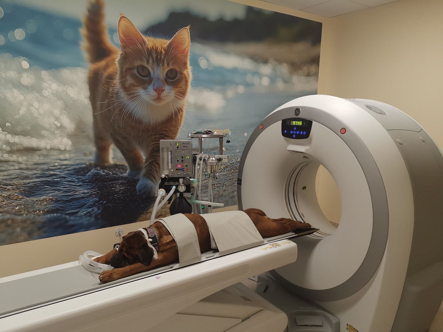 Warto podkreślić, iż badanie TK to procedura nieinwazyjna i bezbolesna, a konieczność płytkiej narkozy wynika z faktu, iż badane zwierzę musi leżeć przez czas badania nieruchomo, kiedy to głowica aparatu skanuje pacjenta leżącego na przesuwającym się stole. Jego funkcje życiowe są monitorowane przez lekarza weterynarii z zastosowaniem specjalistycznego aparatu anestezjologicznego współpracującego z tomografem.